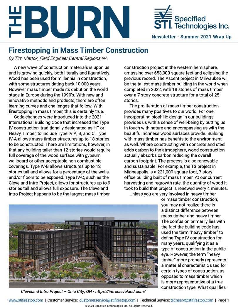 Recently the UL STP (Standards Technical Panel) 1479 reviewed the UL 2079 test standard for construc...